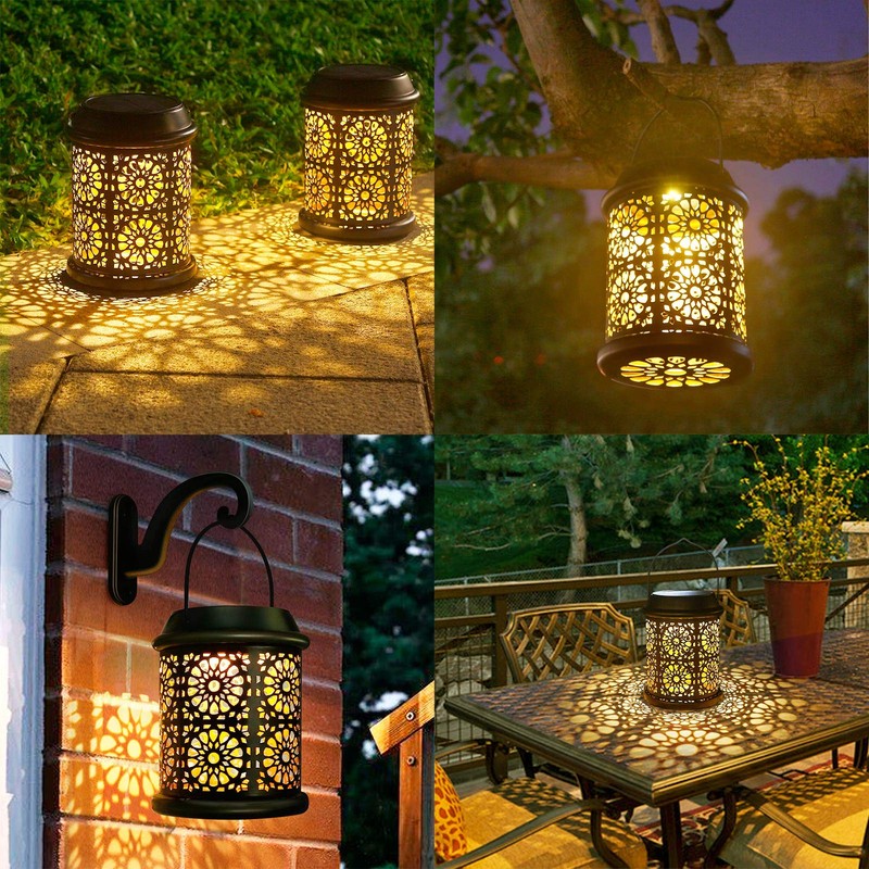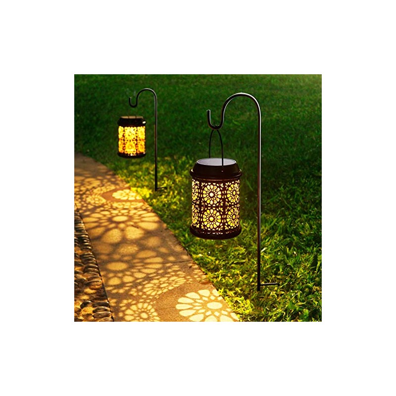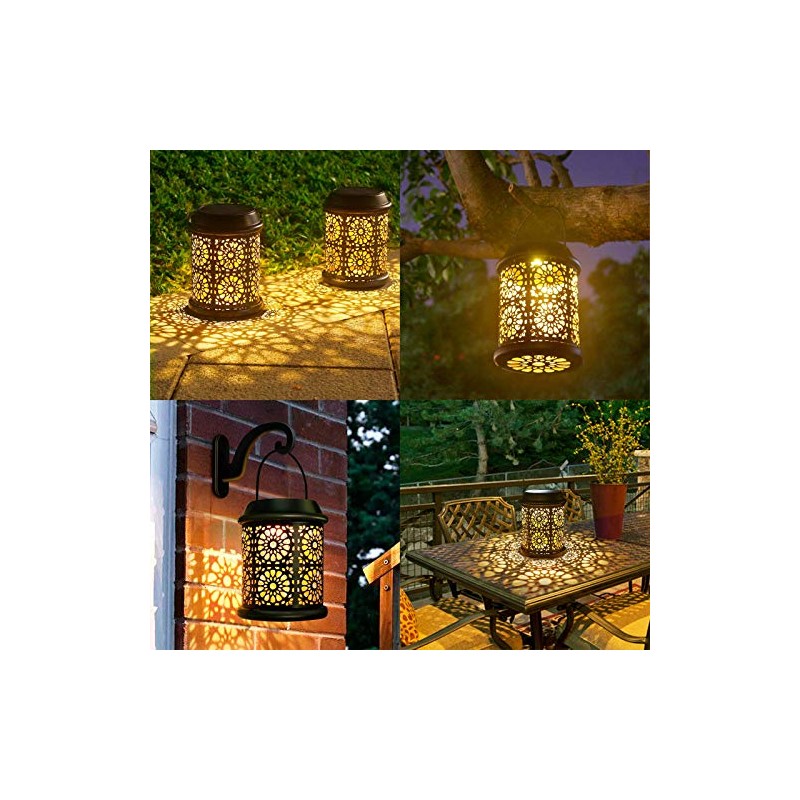 - 【Compatible】Solar lanterns can be placed directly outdoors, such as backyard dining tables, garden paths, porch steps. It can also be hung on the shepherd hook (not included) to light up the path. The package included an installable hook. With a handle, you can hang on a hook.