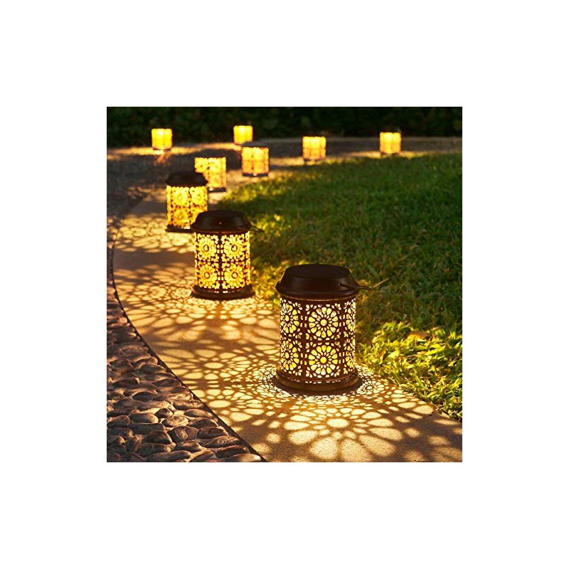 - 【Beautiful Lighting Effects】Special retro style and flower carved design.The inside of the lantern is golden, which can reflect light better. With the night coming, the lantern turns on, the lighting get through the carved. The light is so charming that can make your yard become more beautiful.