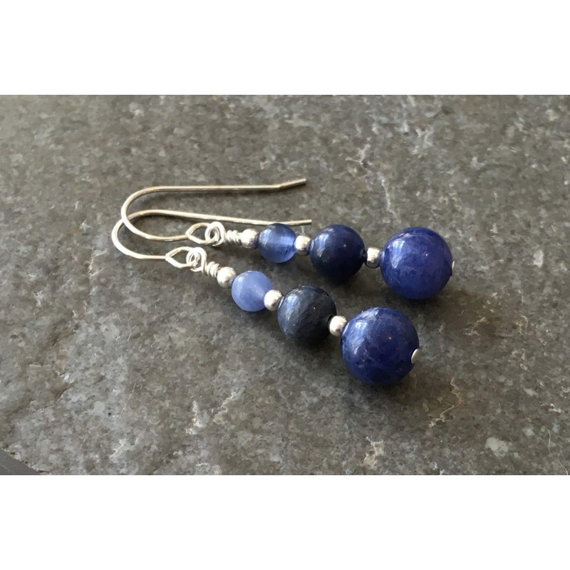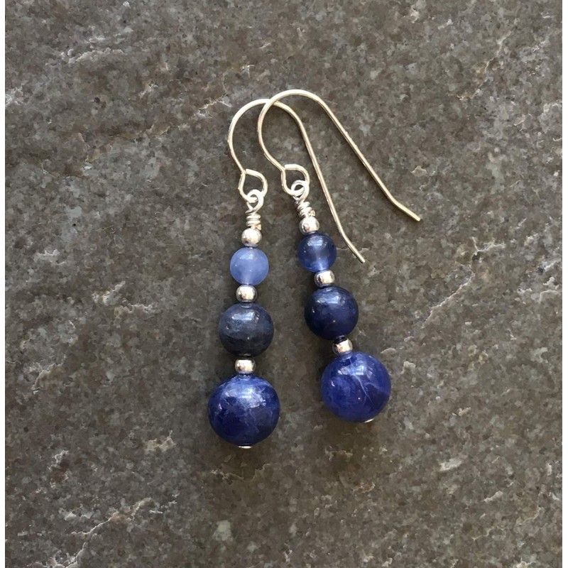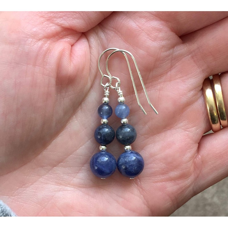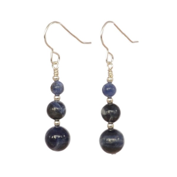 Denim Blue Graduated Sodalite Gemstone & Sterling Silver Hook Drop Earrings with Gift Box