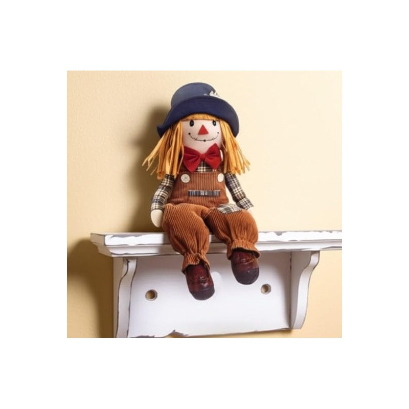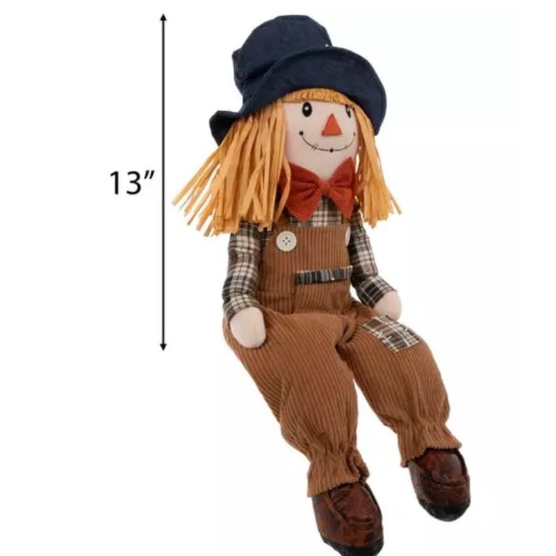 Denim Hat Scarecrow Shelf Sitter Home Fall Autumn Halloween Table Decoration 13" Height