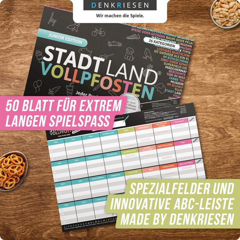 - Official extension of the Stadtland Vollpfosten game. The Junior edition - Every Point Counts. The junior version of the XXL cult town-region-river with lots of fun categories.