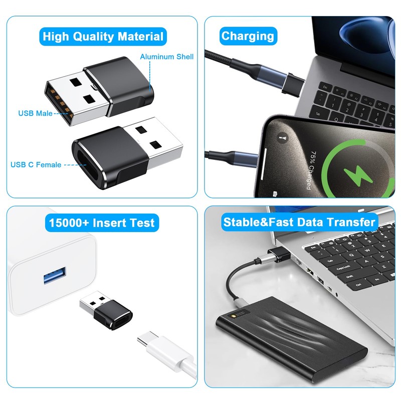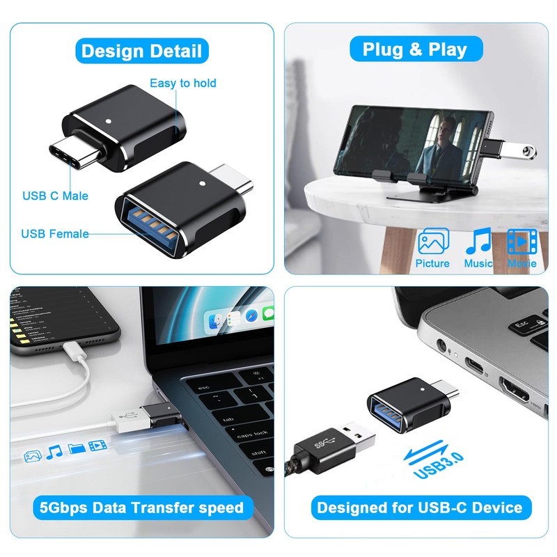 • Port Conversion: Cell phone OTG adapter, by inserting the adapter into an available standard USB/USB C port, your devices (charger, power bank, computer) can turn into a USB or USB-C port.