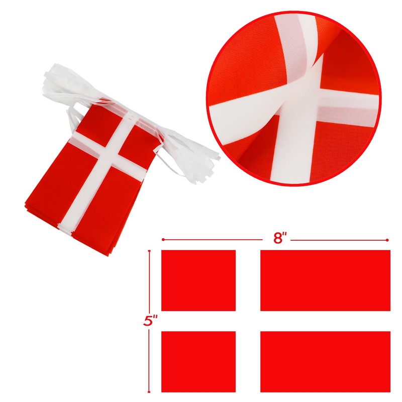 Denmark String Flag Pennant Banner - 38 Flags, 42 Feet Small Mini Danish Dane Flags Bunting Banner for Country Decoration, School, Party, Sports Events