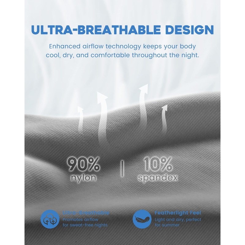 - 【Double-Sided Cool & Breathable】Unlike most summer blankets that cool on only one side, this blanket is equipped with Q-Max cooling fabric on both sides, ensuring consistent coolness regardless of how it’s used. Our summer comforter made from a 90% nylon and 10% spandex blend, it offers a smooth, breathable surface that quickly disperses heat and maintains airflow. Compared to cotton or bamboo, it resists heat buildup and stays cool throughout the night, while its slight stretch ensures a soft, body-conforming fit.