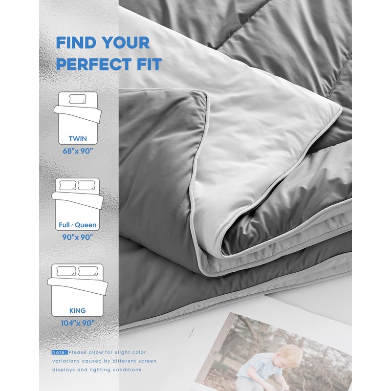 - 【Three Sizes, Reversible Colors】Style your bedroom with a reversible comforter available in calm, modern color pairings. Choose the perfect size for your bed: Twin (68"x90"), Queen (90"x90"), or King (104"x90"). A versatile fit for any bedroom, guest room, or dorm. The fabric is OEKO-TEX certified and features anti static properties—great for year-round use in any bedding set.