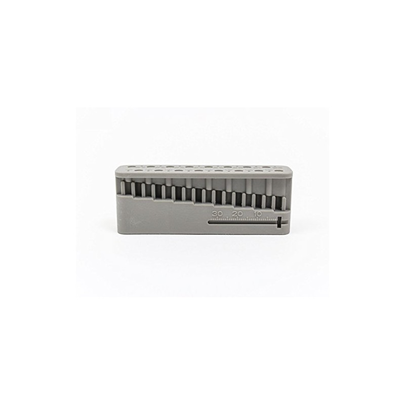 Endodontic Block File Bur Holder with Measuring Ruler - Grey Size: 3.9 x 0.9 x 1.2 Inches / 10 x 2.3 x 3.2 cm Hole Diameter: Approximately 0.04 inches / 0.1 cm Includes Endodontic Ruler on side Manufacture for precision and long lasting use Resistant to High Temperature and Pressure