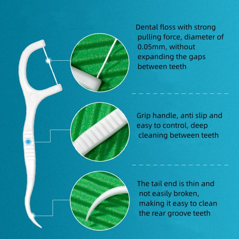 - ✨Dental floss grip: Anti slip texture in the middle of the handle body, easy to control slip, easier to control force to prevent scratches on gums, and deep cleaning between teeth; Tail end: It is thin and not easy to break, and can penetrate into the dead corners that cannot be cleaned by a toothbrush, effectively removing tartar and food residue, making it easy to clean the rear teeth
