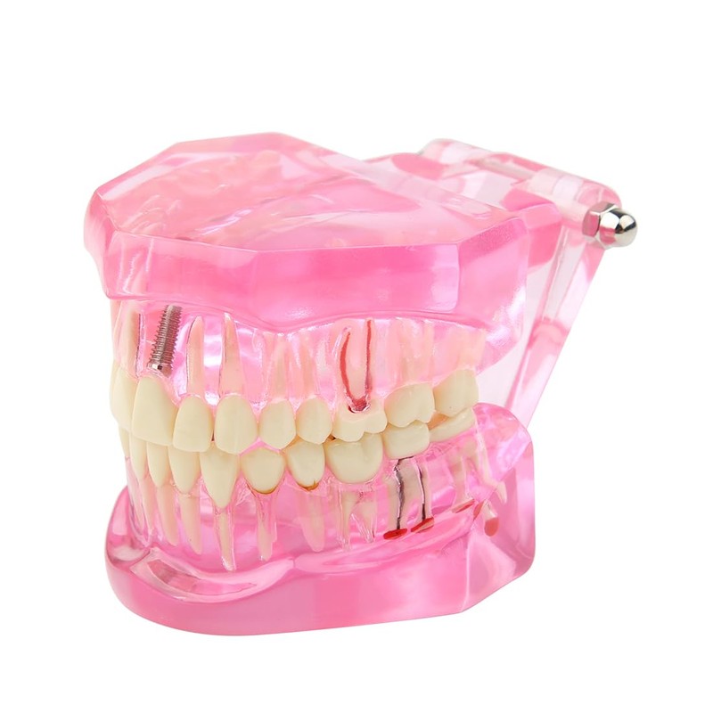 Dental Implant Teeth Model Disease Analysis Demonstration Standard Teeth Typodont Training Tooth Model with Removable Crown Bridge for Student Education(Pink)