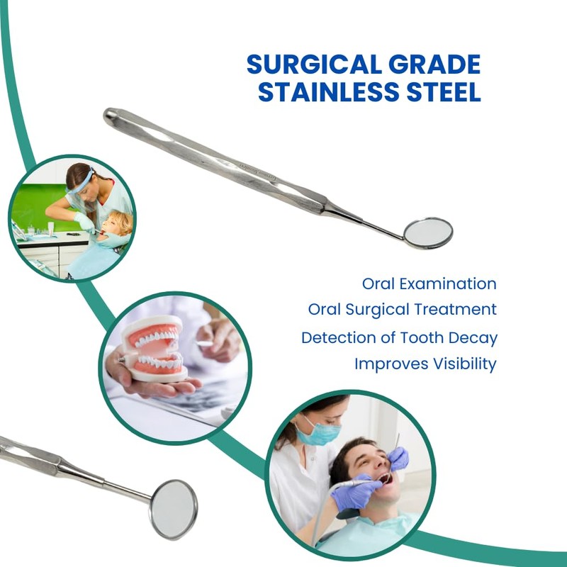- ✅ CLEAR REFLECTION: The clear reflected mirror image allows you to examine details along patient’s teeth and surrounding structures of the mouth. Easy to manuever, the mirror provides indirect vision of certain locations in a mouth where visibility is difficult.