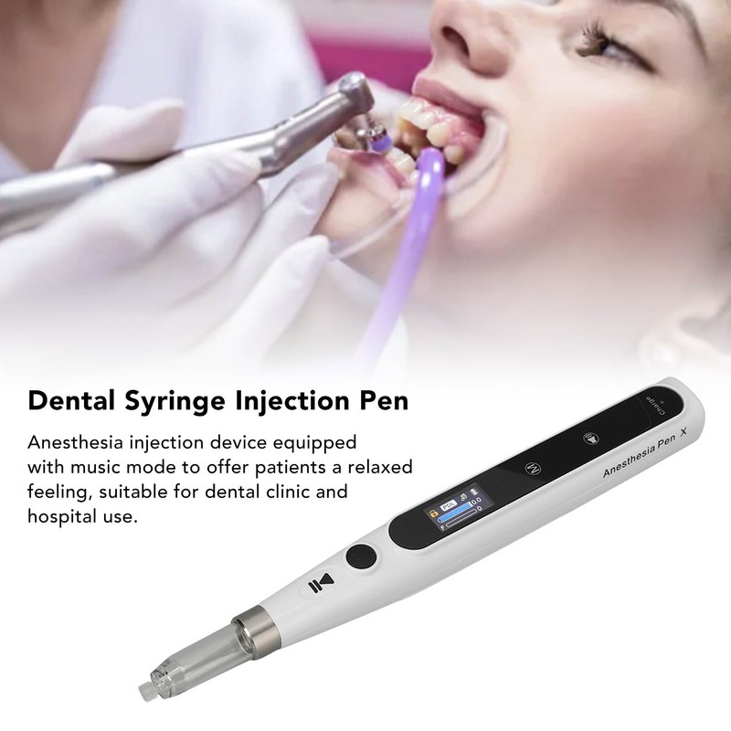 1、Wireless Operation: Oral anesthesia injection device adopted wireless pen type design for easy operation, which is simple and convenient to use. 2、Adjust Speed: Anesthesia injection device equipped with high, low and PDL periodontal injection speed gears, which can accurately boost control dosage. 3、Evenly Injection: Denta syringe injection device adopted dynamic pressure feedback, provide uniform injection in different tissue densities, bring convenient use. 4、Widely Use: Anesthesia injection device equipped with music mode to offer patients a relaxed feeling, suitable for dental clinic and hospital use. 5、Package Included: Oral anesthesia injection pen with 8 injection tubes and 5 rubber pads, made of ABS material, safe and sturdy, which can be used for a long time.