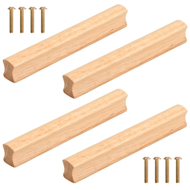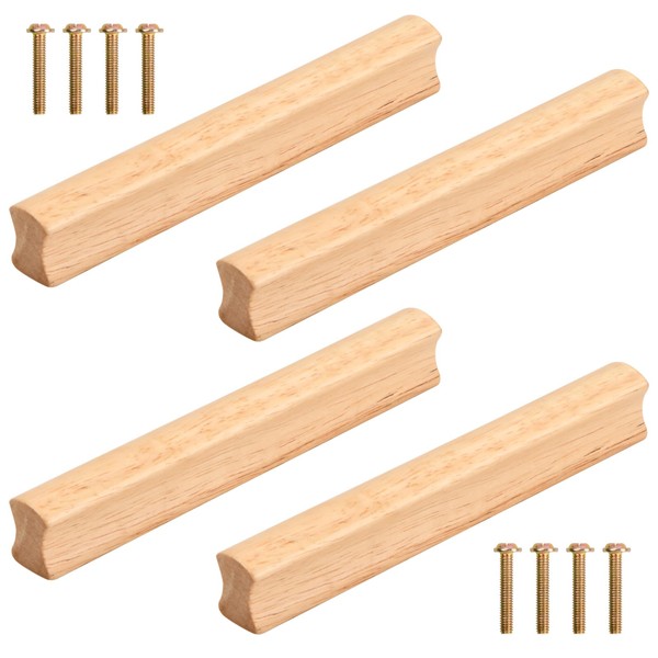 dentedeleao Pack of 4 Furniture Handles, Wooden Cabinet Handles with Mounting Screws, Modern Simple Drawer Handles, Furniture Handle Made of Solid Wood for Kitchen, Chest of Drawers, Cabinet, Hole