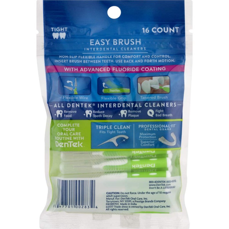 - DenTek Easy Brush Fresh Mint Tight Interdental Cleaners, 16 Each (Value Pack of 3)