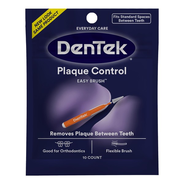 Dentek Interdental Brushes - Standard, Mint Flavor, 10 Count - Easy-Brush Interdental Plaque Remover with Fluoride - Cleans Tight Spaces Around Teeth, Braces & Other Dental Appliances