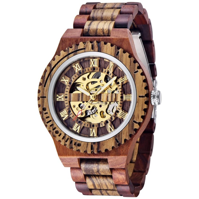Dentily Automatic Movement Wooden Watch Skeleton Wood Watch Self-Winding Watches for Men