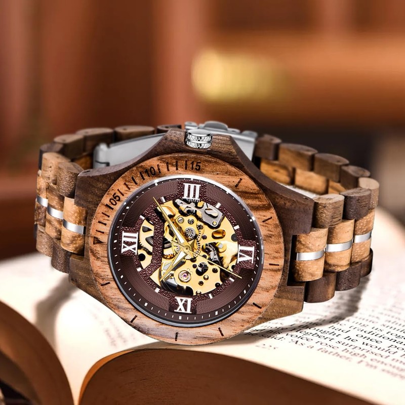 - Automatic Mechanical Movement: This wooden watch features a sophisticated mechanical movement, offering the charm of a self-winding watch without the need for batteries. Enjoy the intricate dance of the gears with a transparent case back