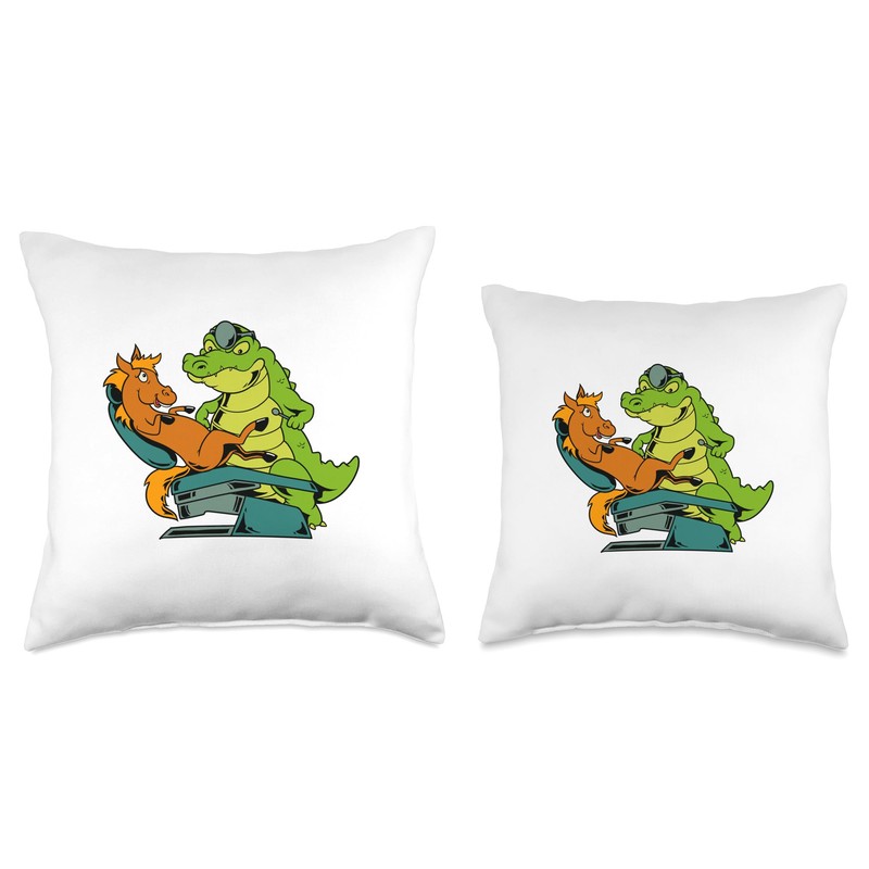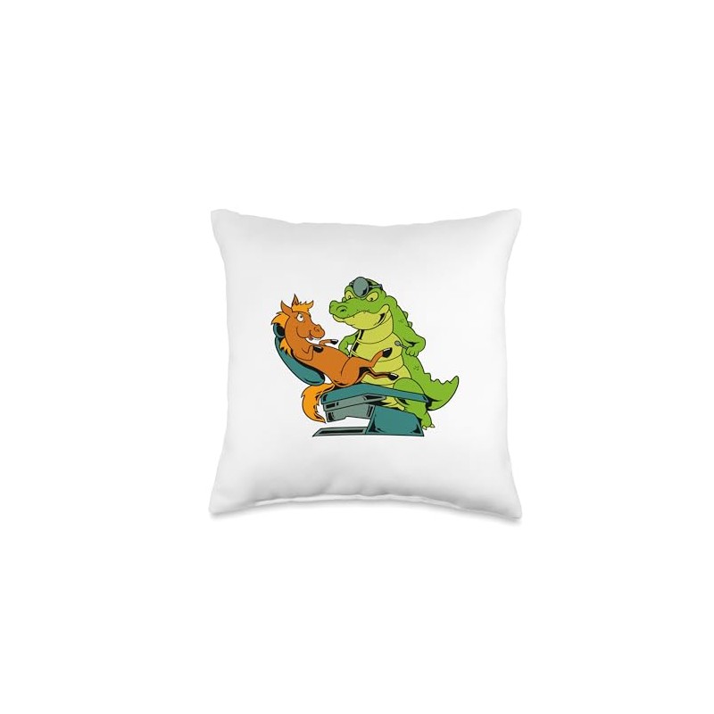 Dentist and dentistry designs Horse at Crocodile Dentist Throw Pillow, 16x16, Multicolor