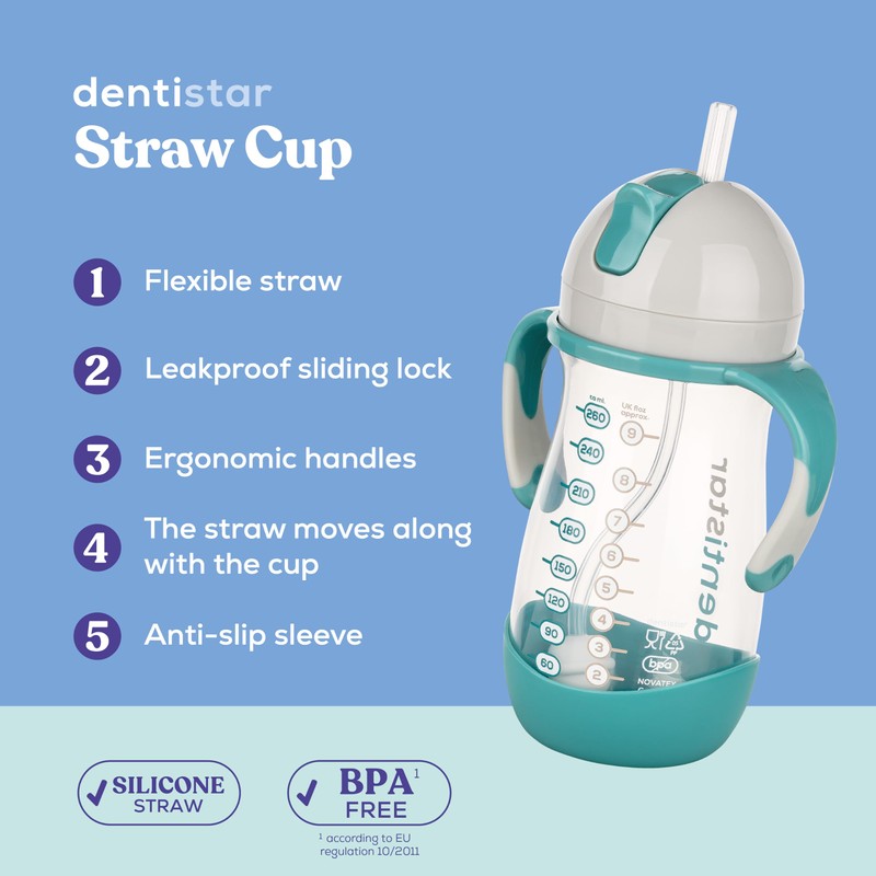 Learning to drink independently is an important step in a toddler’s development. The Dentistar Straw Cup helps your little one with this and makes drinking on their own from a straw absolute child‘s play.
