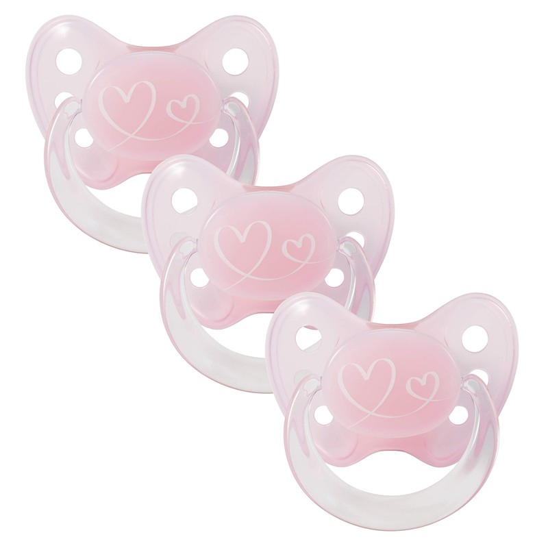 Dentistar® Silikon Schnuller 3er-Set â GröÃe 1 für 0-6 Monate â Zahn- & kieferfreundlicher Silikonschnuller mit Dental-Stufe â Rosa mit Herzmotiv â BPA-frei â Made in Germany
