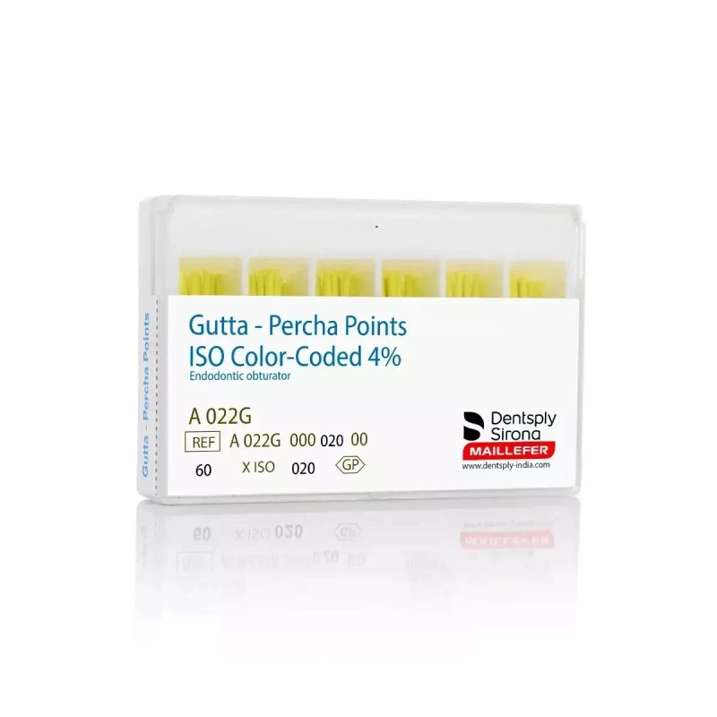 Dentsply Gutta-Percha Points are dense, highly radiopaque, flexible and pore-free. They can be used with any condensation technique to fill the root canal.