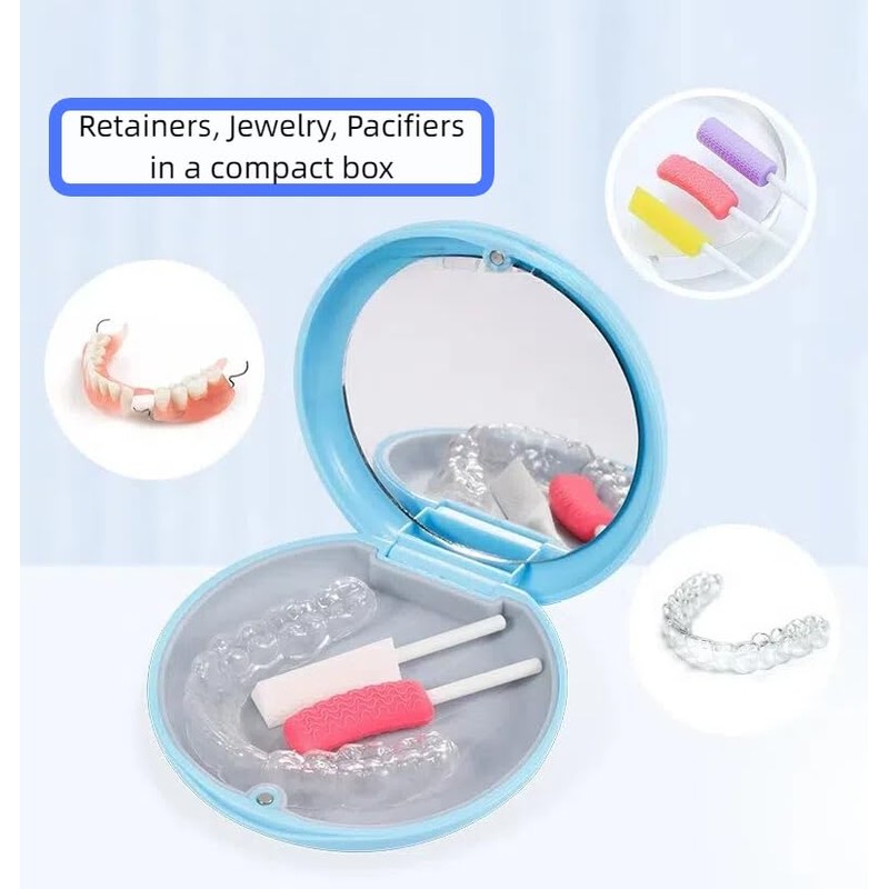 - 【Multiple Uses】Great as dental guard container, retainer bath case, false teeth container, mouth guard container, nightguard cleaner. Also great for storage and clean of pacifiers, teethers, delicate jewelry, etc. Or you can just use it as a portable mirror.