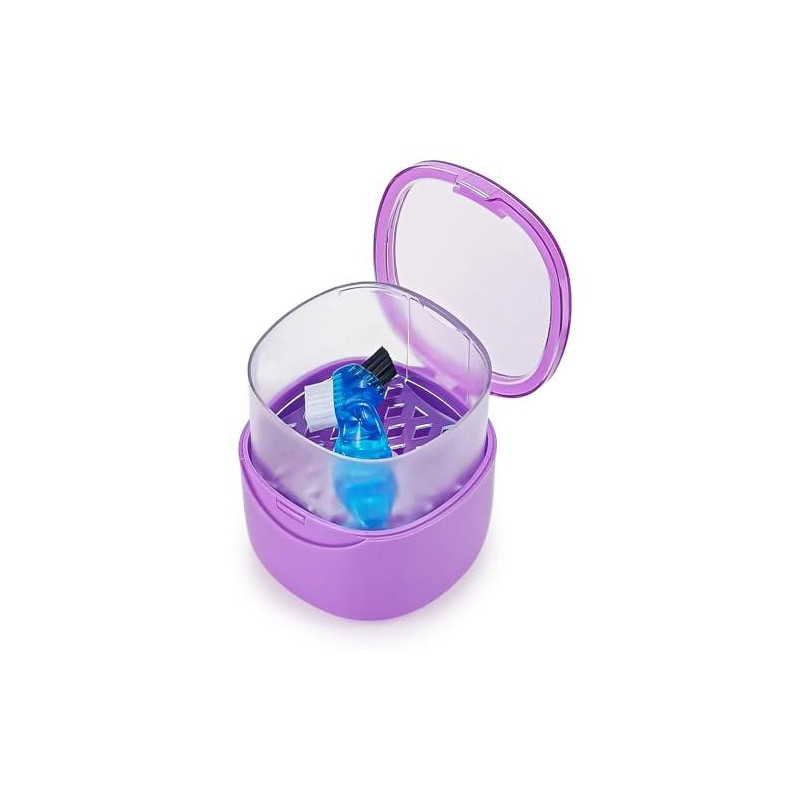 Denture Case Partial Cups for Soaking Dentures No-Leak Container Retainer Cleaning with Brush Household|Travel|Office - Transparent Black - Color: Purple