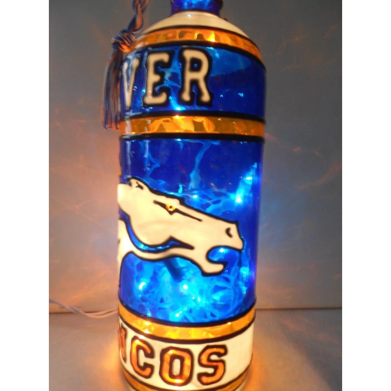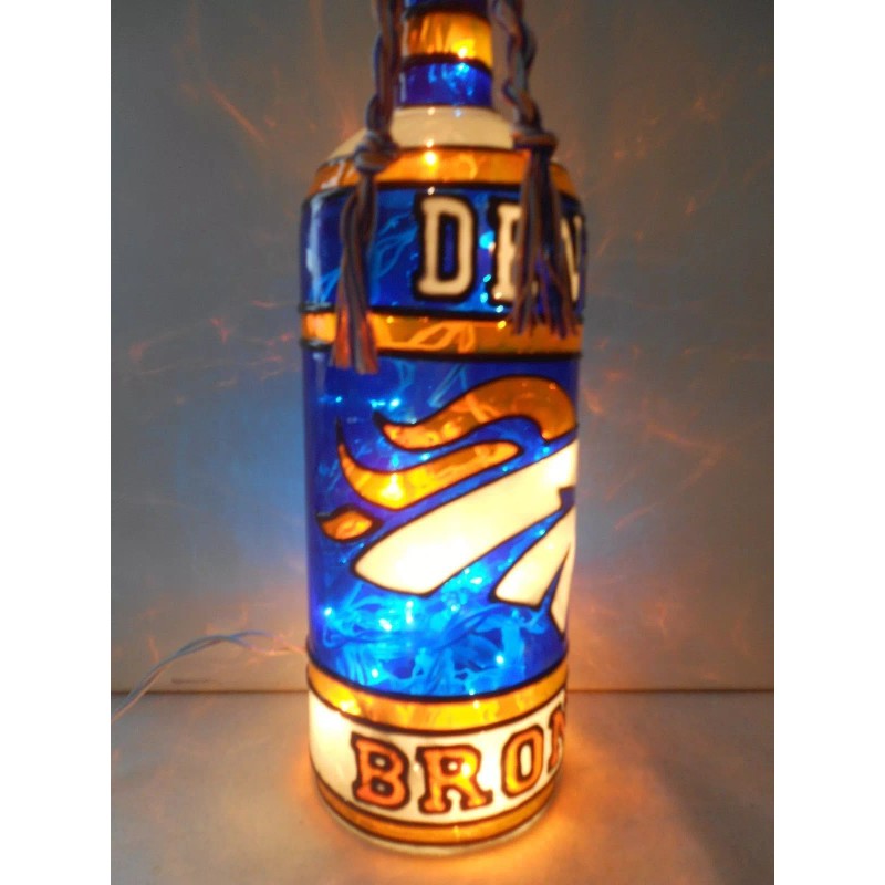 Denver Broncos Inspired Bottle Lamp Hand painted Lighted Stained Glass Look