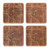 Denver Map Coaster, Set of 4, Sapele Wooden Coaster with City Map, Handmade