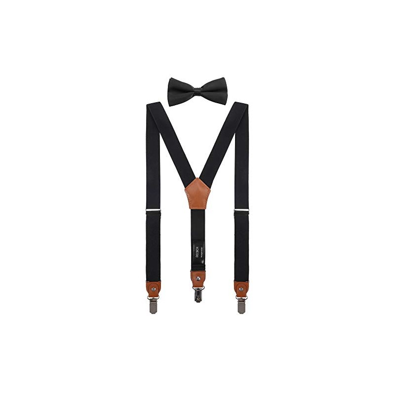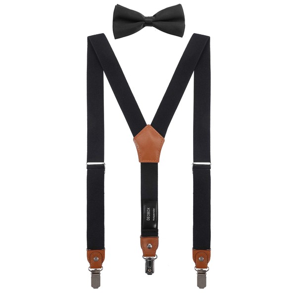 DEOBOX Children Suspenders and Bow Tie Set Black for Wedding Adjustable 40"