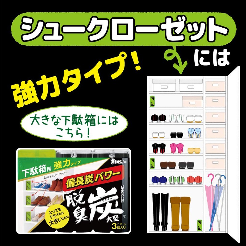 脱臭炭 こわけ 下駄箱用 玄関 脱臭剤 大型 (100g×3個入)