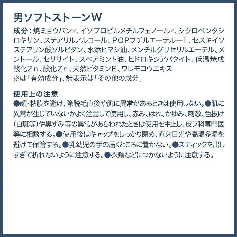 Deonature Men's Soft Stone W for Men, For Armpits, Direct Nuri, Antiperspirant, Stick, 1 Piece, 0.7 oz (20 g)