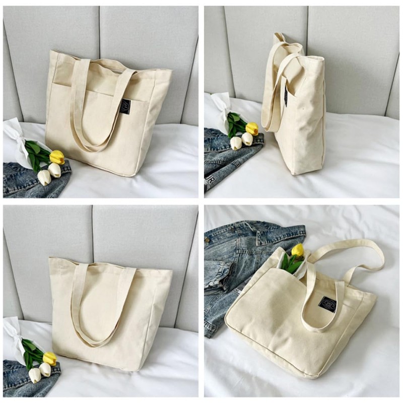 deoway Tote Bag, Canvas Tote Bag, A4, Large Capacity, Shoulder Bag, Canvas, Shoulder Bag, Women's, Men's, Solid, Zipper Included, beige