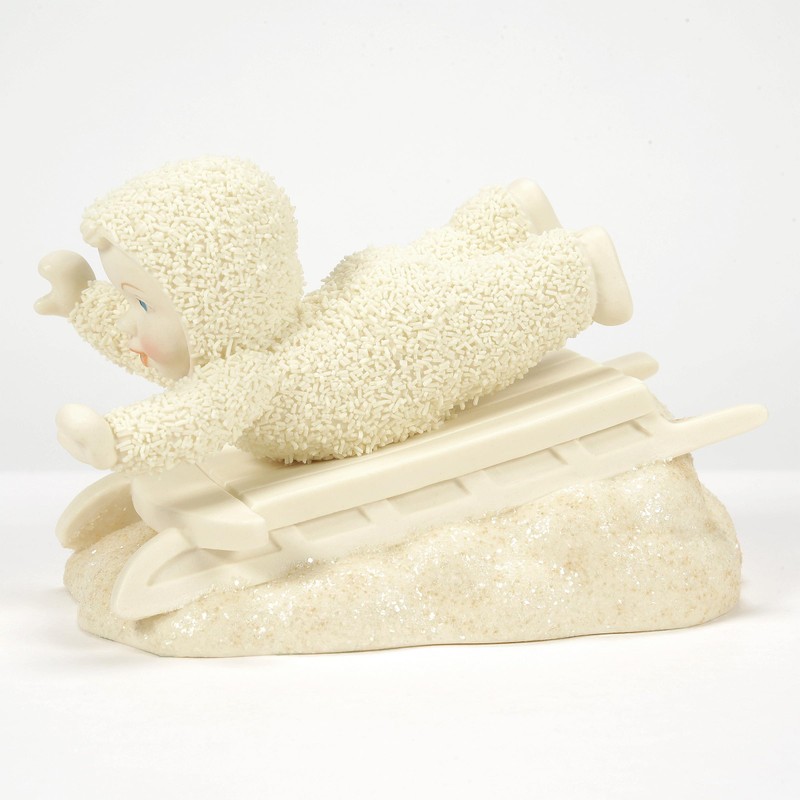 - DESIGN: features a Snowbaby sliding head-first down a hill on a sled