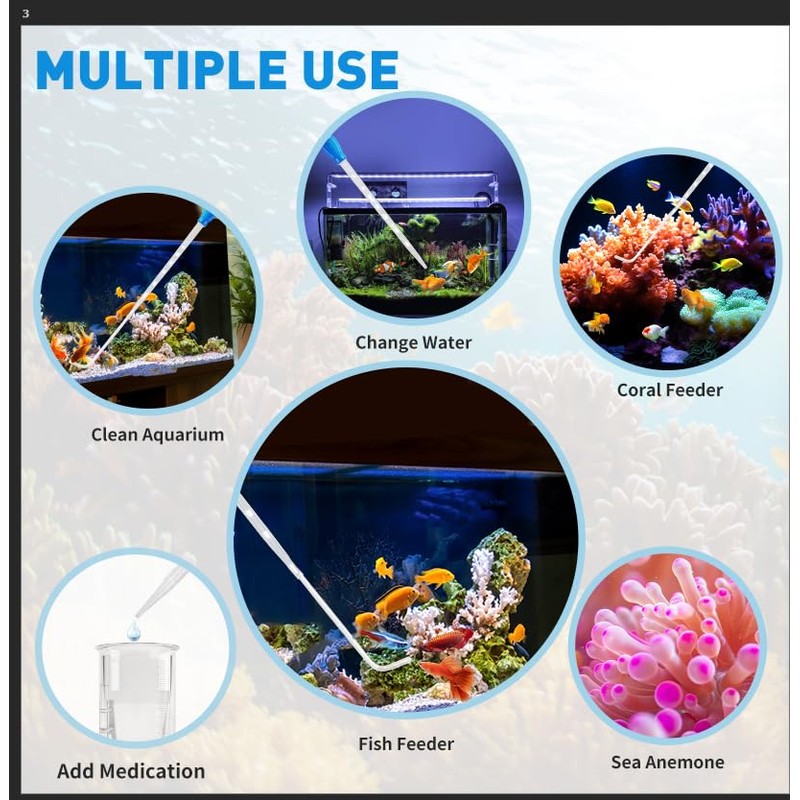 - 🪸Usage Guidelines - Clean the extra large turkey baster for the aquarium before each use. Turn off circulation pumps during feeding. For hot water applications, do not exceed 176°F (80°C).
