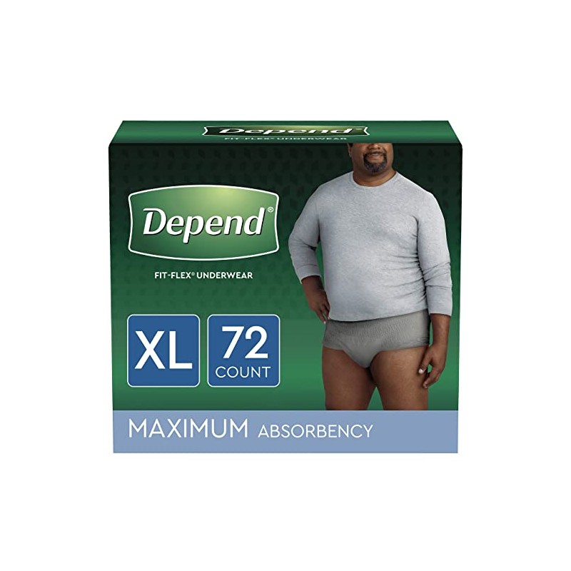Reclaim and reconnect with what matters most in your life with Depend FIT-FLEX Men’s Incontinence Underwear providing Your Best Comfort and Protection Guaranteed.* Available in a masculine grey color, this disposable underwear is ideal for bladder incontinence. Extremely soft, yet strong, material instantly locks in wetness and odors, helping to keep you dry and worry-free with Trusted Protection. A comfortable, underwear-like fit - the SureFit waistband helps keep the briefs in place and the form-fitting elastic strands provide a smooth, discreet fit under clothing, unlike bulky adult diapers. Unscented absorbent incontinence underwear is natural rubber latex-free, lotion-free and fragrance-free. Underwear is soft, quiet and breathable.Depend for Men in Maximum Absorbency is available in three sizes - size small/medium (26-34 inch waist), size large (35-43 inch waist) and size extra-large (44-64 inch waist). Depend incontinence supplies always ship in a discreet box and are FSA- eligible in the U.S. Packaging may vary from images shown.*If you're not completely satisfied with the fit of your Depend, we can help. Purchase by 3/1/21. Mail in by 3/15/21. Online access required. Limit 1 per household. Original receipt/UPC required. Restrictions apply. See www.depend.com/guarantee for details.
