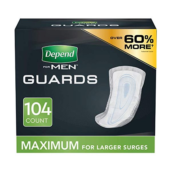 Depend Incontinence Guards/Incontinence Pads for Men/Bladder Control Pads, Maximum Absorbency, 104 Count (2 Packs of 52) (Packaging May Vary)