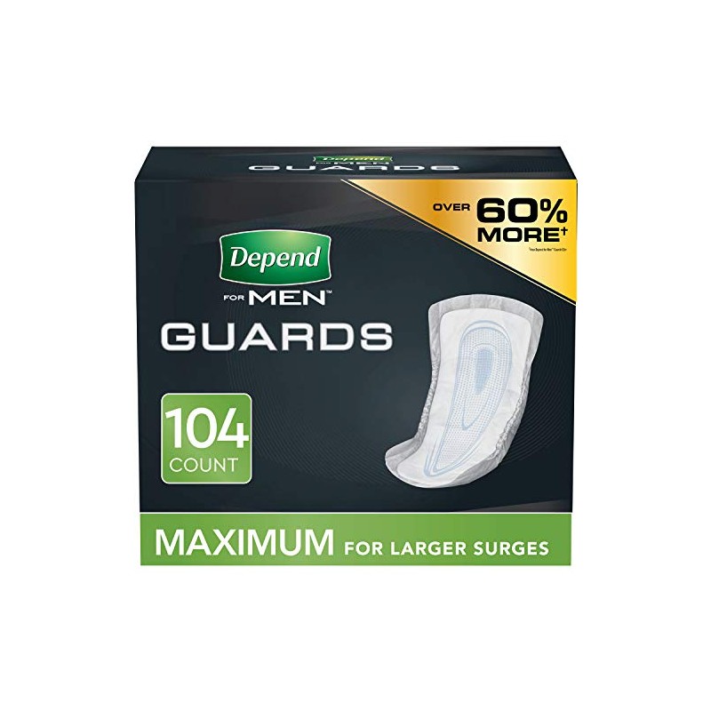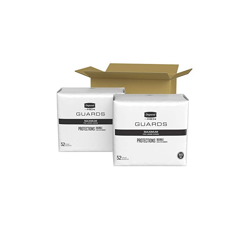 - Depend Guards - Maximum Absorbency Incontinence Pads for Men designed specifically for a man’s body and protect against bladder leaks