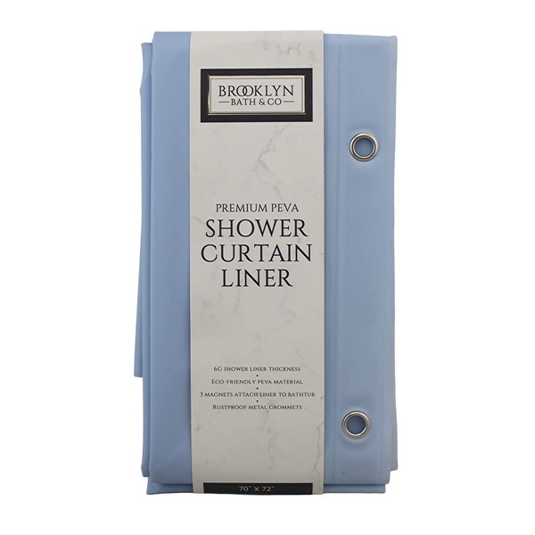 Dependable Industries inc. Essentials Premium 6 Guage PEVA Shower Curtain Liner - PVC Free Magnetized Bottom Odorless with Rustproof Grommets (Light Blue)