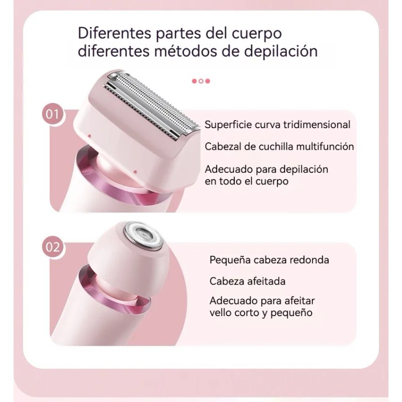 AFEITADORA ELÉCTRICA PARA MUJER: Disfruta de un afeitado suave y sedoso sin irritaciones con esta afeitadora para mujer con 2 cabezales intercambiables para cara, cuerpo y zonas sensibles. Esta afeitadora para mujer cuenta con cuchillas hipoalergénicas de triple uso y alta velocidad y una membrana de malla flotante 3D para cortes rápidos y precisos, por lo que podrás decir adiós a la irritación de la afeitadora y a los vellos encarnados.