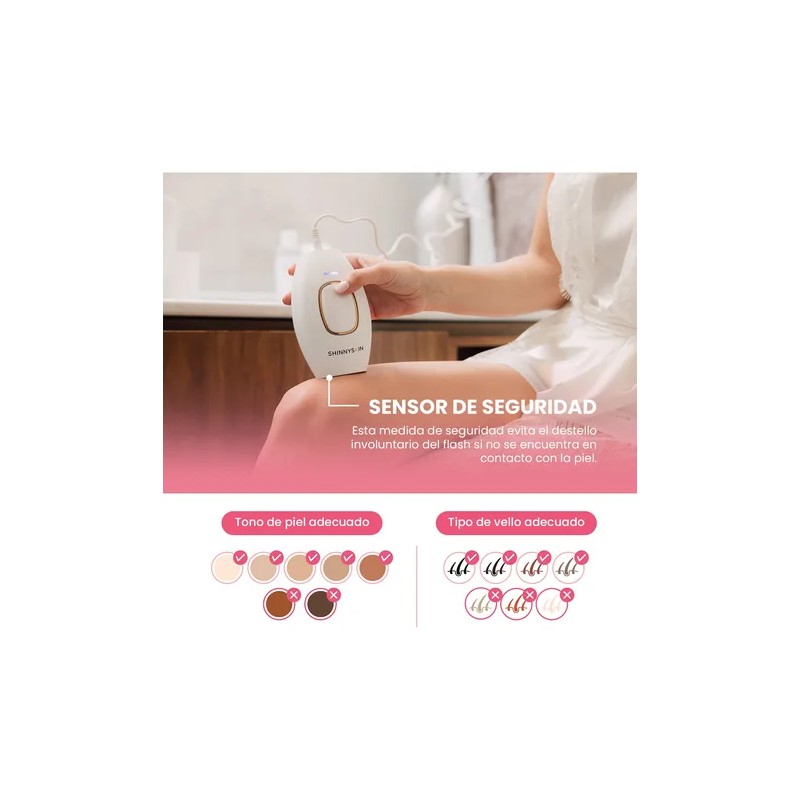 ¿Cansada de gastar en rastrillos o someterse a sesiones dolorosas en clínicas? Con la Depiladora IPL Shinny Skin, tienes una solución eficaz y cómoda desde la tranquilidad de tu hogar. Diseñada con tecnología de grado clínico, te permite tratar todo el cuerpo de manera segura y sin dolor, ajustándose a tus necesidades personales.