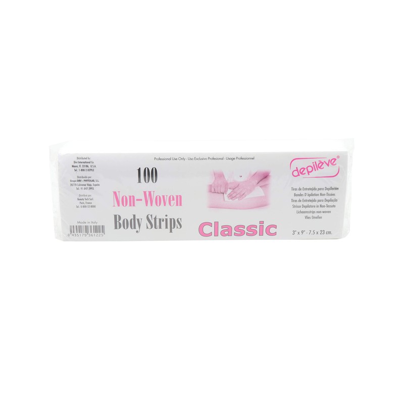 The Depileve Body Classic Stripes are fleece strips for hair removal all over the body. They provide a smoother peel and remain stable even after multiple uses. The strips are wider for perfect application on large areas of the body and longer, for a secure hold when removed.