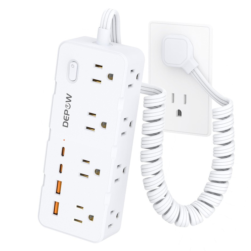 DEPOW Power Strips with Surge Protection, 1 FT to 4 FT Spring Retractable Extension Cord with 8 AC & 4 USB Ports (2 USB C), 1700J Surge Protector, Flat Plug, Wall Mountable for Home Office, White