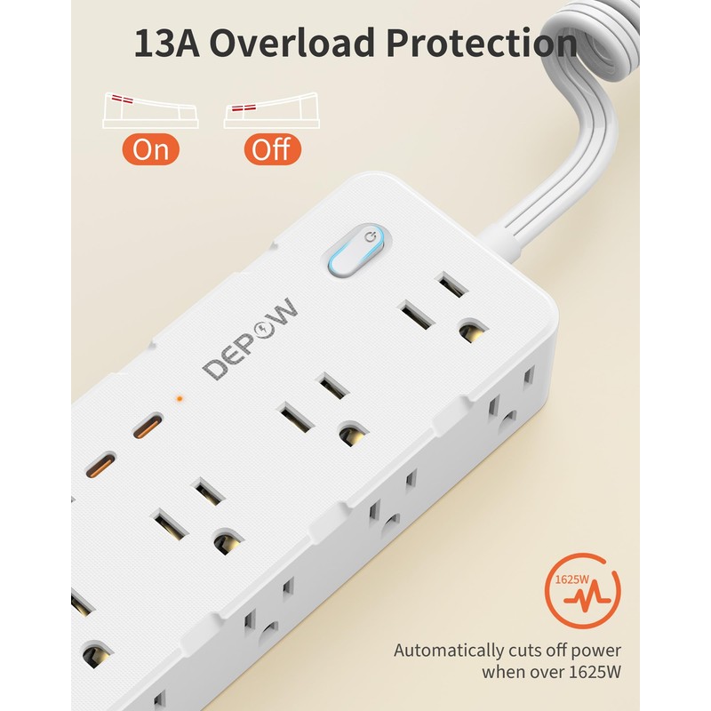 - 【 Protection for Your Electronics】-Sleep soundly knowing your gear is shielded! Built-in 1700-Joule surge protection absorbs voltage spikes, while the 13A/1625W overload safety switch automatically cuts power during dangerous surges or short circuits.