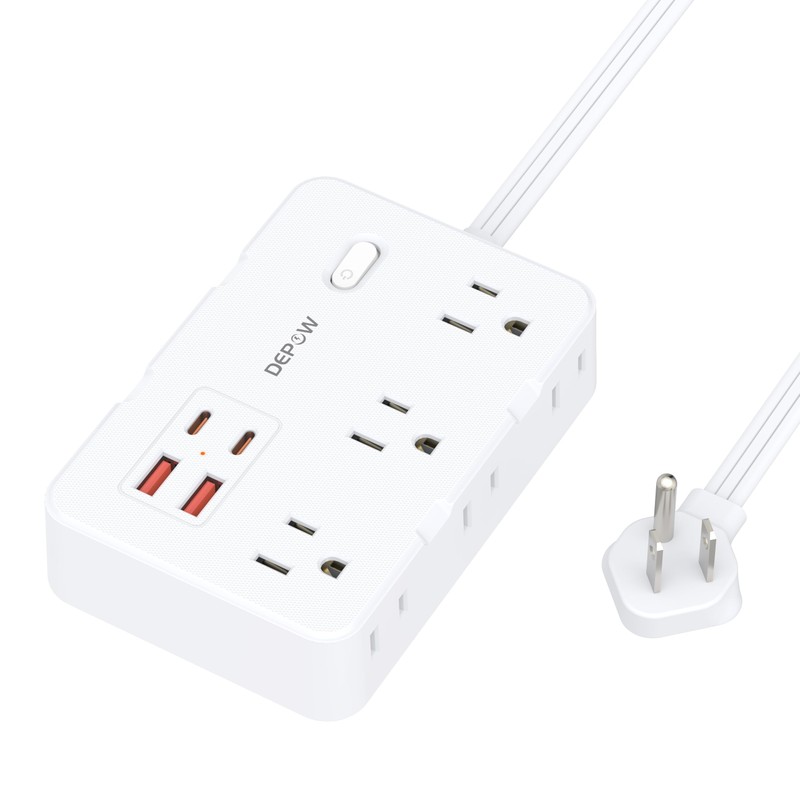 DEPOW Surge Protector Power Strip with Flat Plug, 6 FT Extension Cord with 6 AC Outlets 4 USB Ports(2 USB-C),1050J Surge Protection, Wall Mountable Charging Station for Office, Home, White