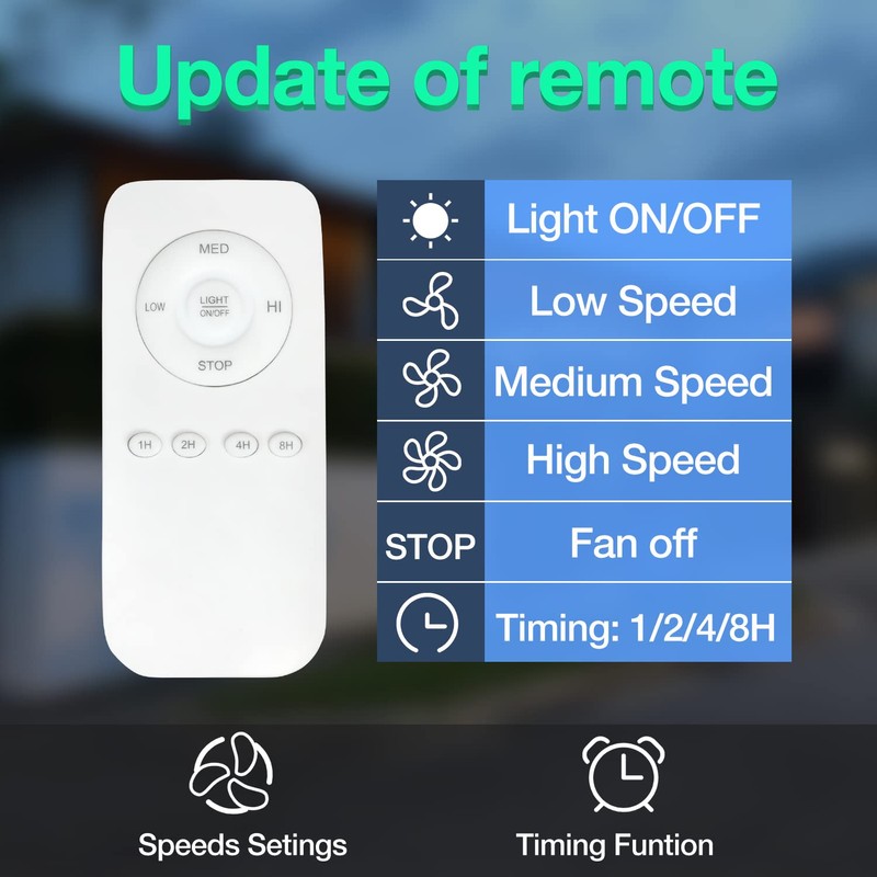4.Fan and lights can be turn on/ off separately by the remote control. When you turn off the fan Ultra Quiet Motor Ultra-powerful air movement with whisper-quiet performance.