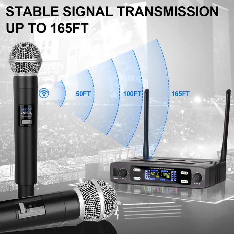 - STABLE WIRELESS PERFORMANCE: High quality cardioid capsule and improved circuitry design of each handheld microphone can capture sound and transmit smoothly without dropouts, hiss, or feedback, delivering robust, clean, and stable sound quality.
