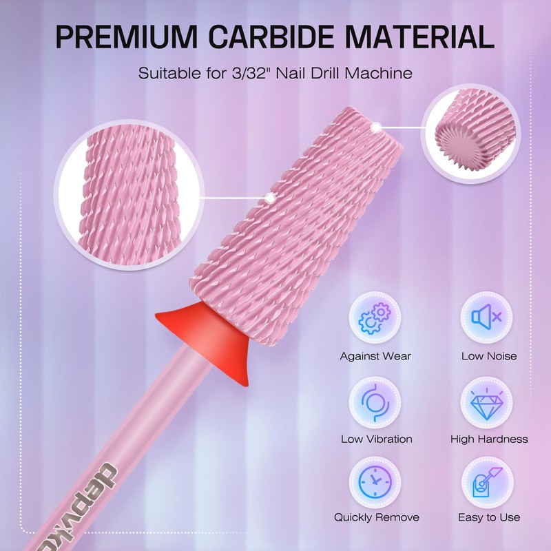 Depvko 5 in 1 Nail Drill Bits, 3/32" Carbide Tungsten Nail Bits for Nail Drill, Professional Two Way Use Gel Remover Drill Bit for Manicure Pedicure Cuticle Fast Remove (Classic 5in1-Pink, Fine-F)