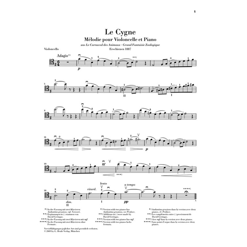 Der Schwan aus Der Karneval der Tiere: Instrumentation: Violoncello and Piano (G. Henle Urtext-Ausgabe)