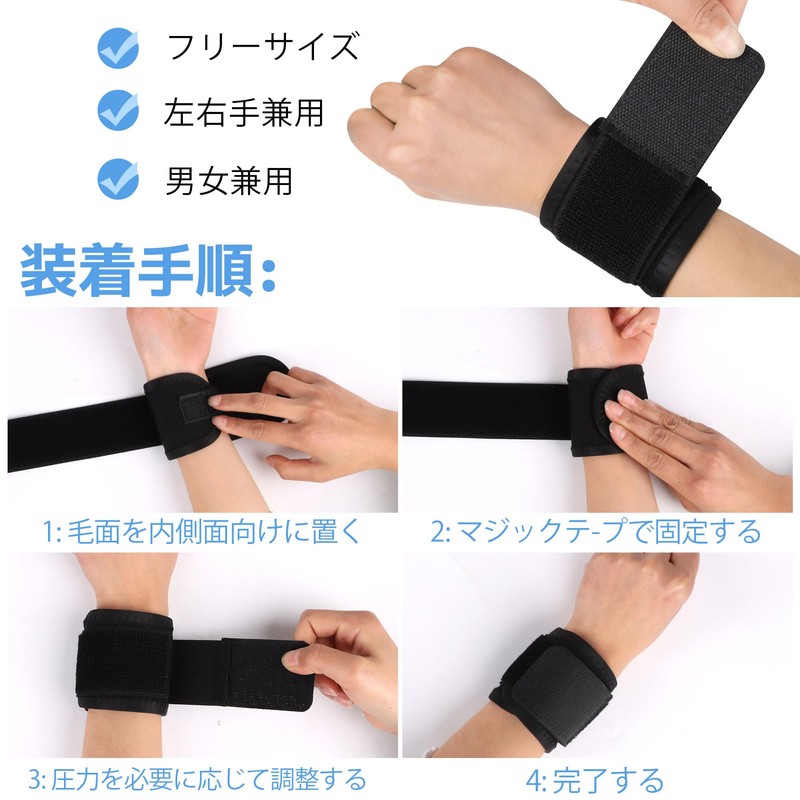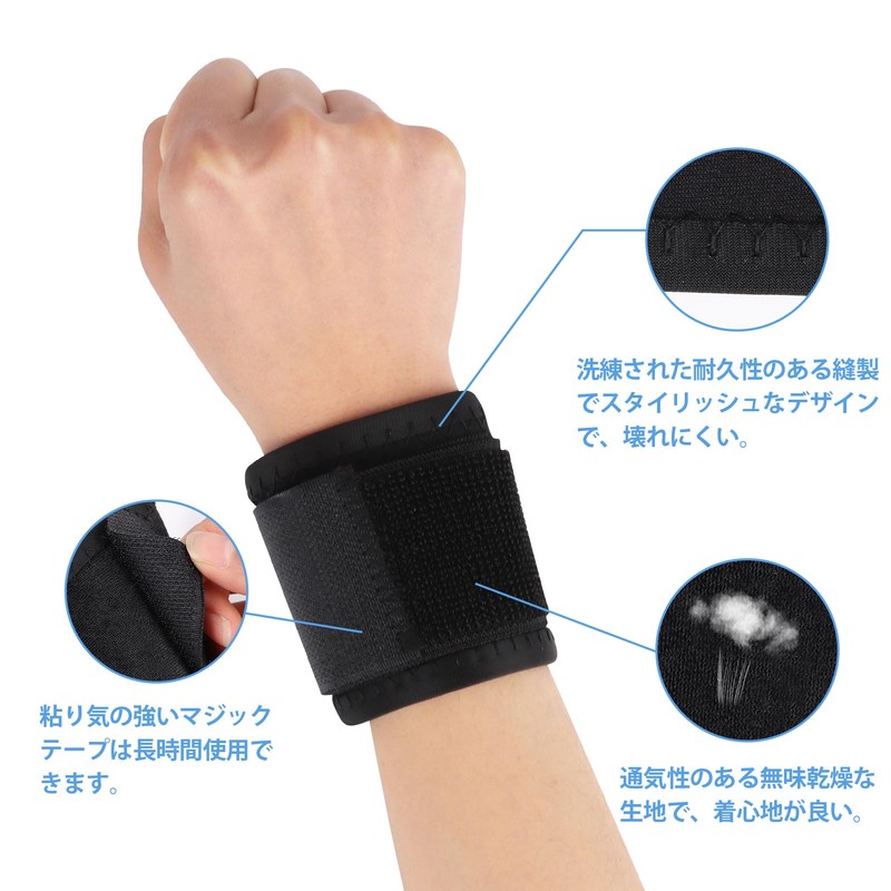 DERAYEE Wrist Supporter, Fixed Wristband, Strong Pressure, Unisex, 2 Pieces, Sports, Housework, Everyday Work, Muscle Training, Adjustable, Black (Black, 8.7 x 2.8 inches (22 x 7 cm)