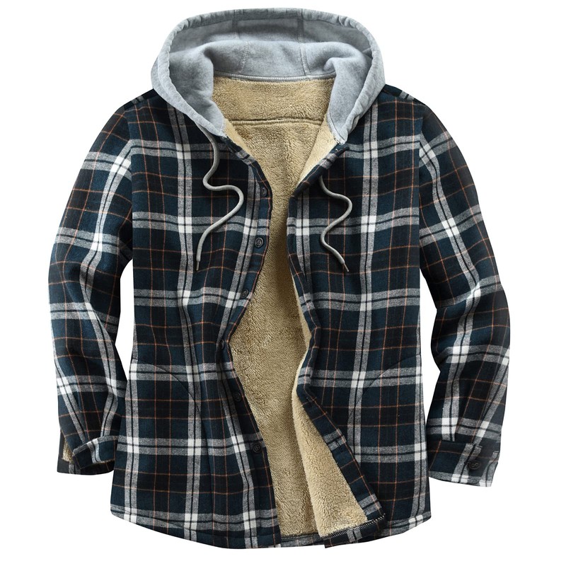 - Features: Button, long sleeves(The sleeves lined), 2 side pockets, drawstring hood, plaid element outer and fuzzy fleece inside, to provide extra warmth and comfort.