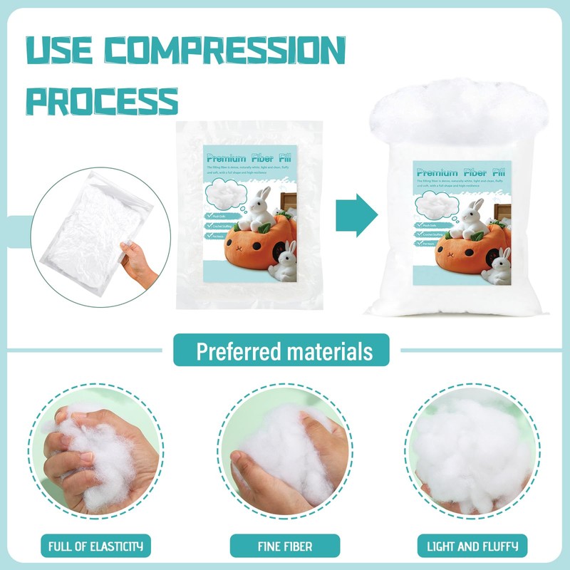 - High quality: The fiber filler is dense, naturally white, light and clean, fluffy and soft, and full in shape